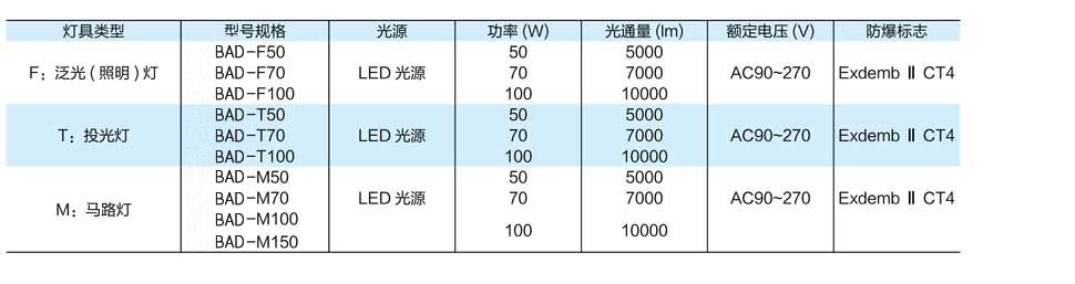 BAD防爆LED燈技術參數