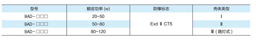 BAD防爆LED燈產品(pǐn)規格