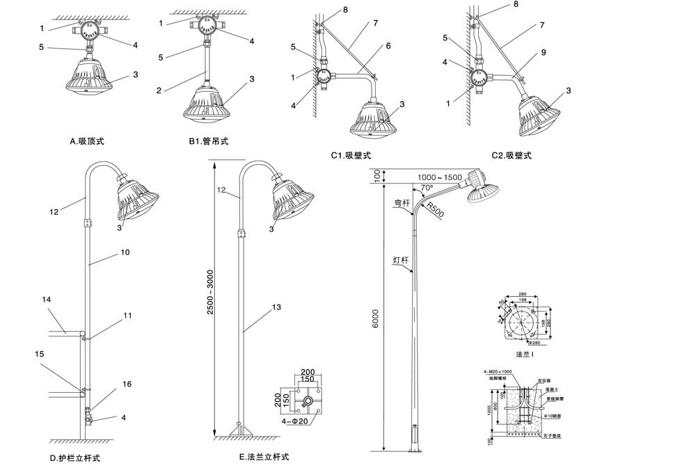 BAD防(fáng)爆LED燈外形及安裝舉(jǔ)例(lì)