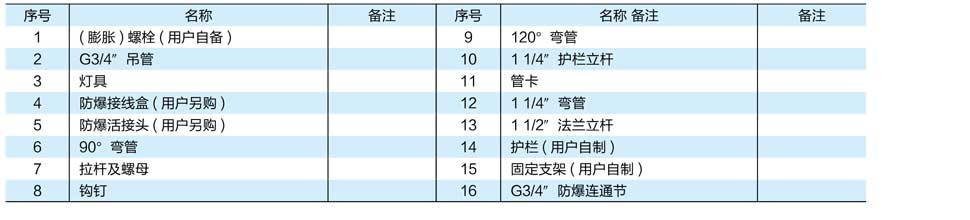 注:1、按照產品型號說明逐條選擇並注明防爆標誌;例如:需(xū)要40W、220V,吊杆式,配接(jiē)線盒,氣體防爆,