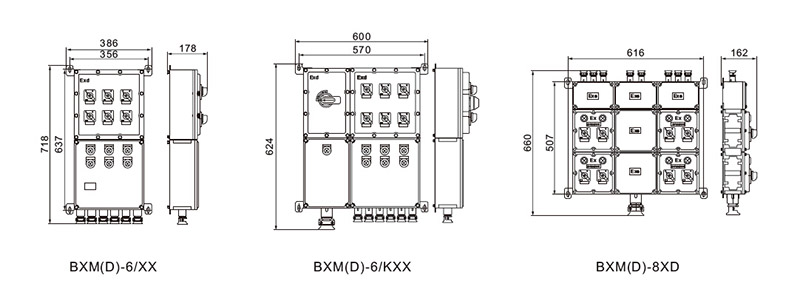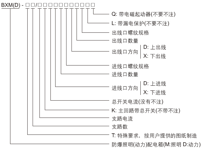 ● BXM(D)係(xì)類防(fáng)爆照明(míng)(動力)配電箱,可根據用戶要求進行特殊設計,用戶需(xū)提供電氣係統圖。