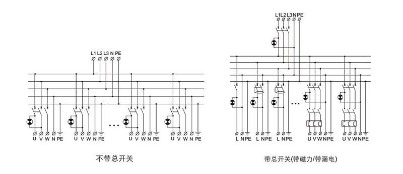 ● 如需帶總開關則請注明總開關(guān)的(de)電流及極數,並注明進出線方向,進出線規格及對應的數量;