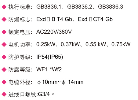 ● 適用(yòng)於ⅡA、ⅡB、ⅡC類爆(bào)炸性氣體環境(jìng);